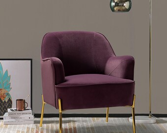 Accent Chairs Living Room Chairs. Create an inviting atmosphere with new living room chairs. Mid Century Modern Tufted Velvet Task Chair for Home Office-Purple.