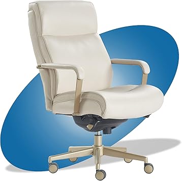 Amazon Com La Z Boy Melrose Executive Office Adjustable High Back Ergonomic Computer Chair With Lumbar Support Brass Finish Ivory White Bonded Leather Home Kitchen